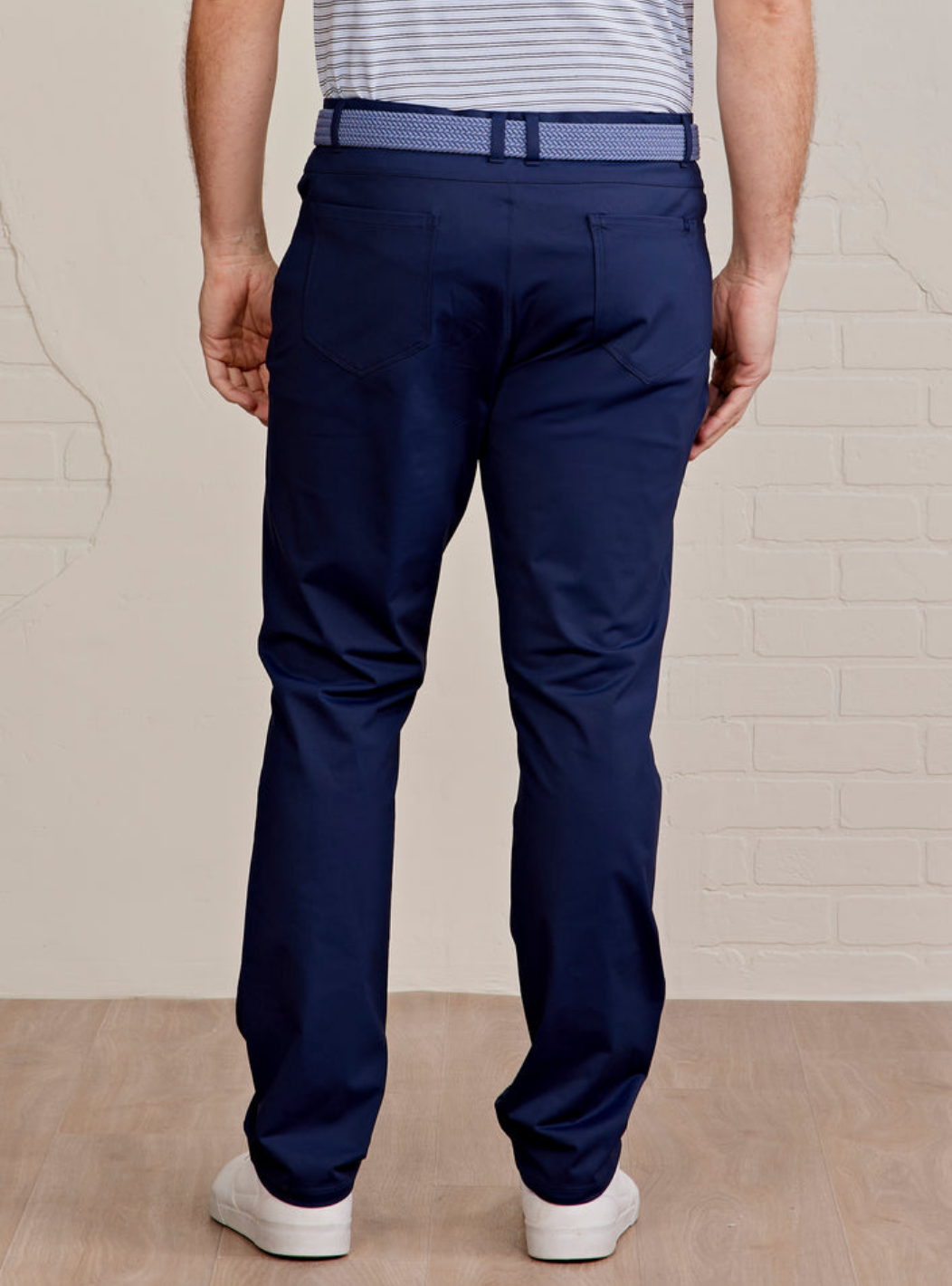 • Ready for wherever the day takes you. A flat, elastic waistband & zip fly deliver clean comfort, while side slash pockets & a secure back zip pocket keeps essentials close. These pants transition effortlessly from golf to work to dinner.