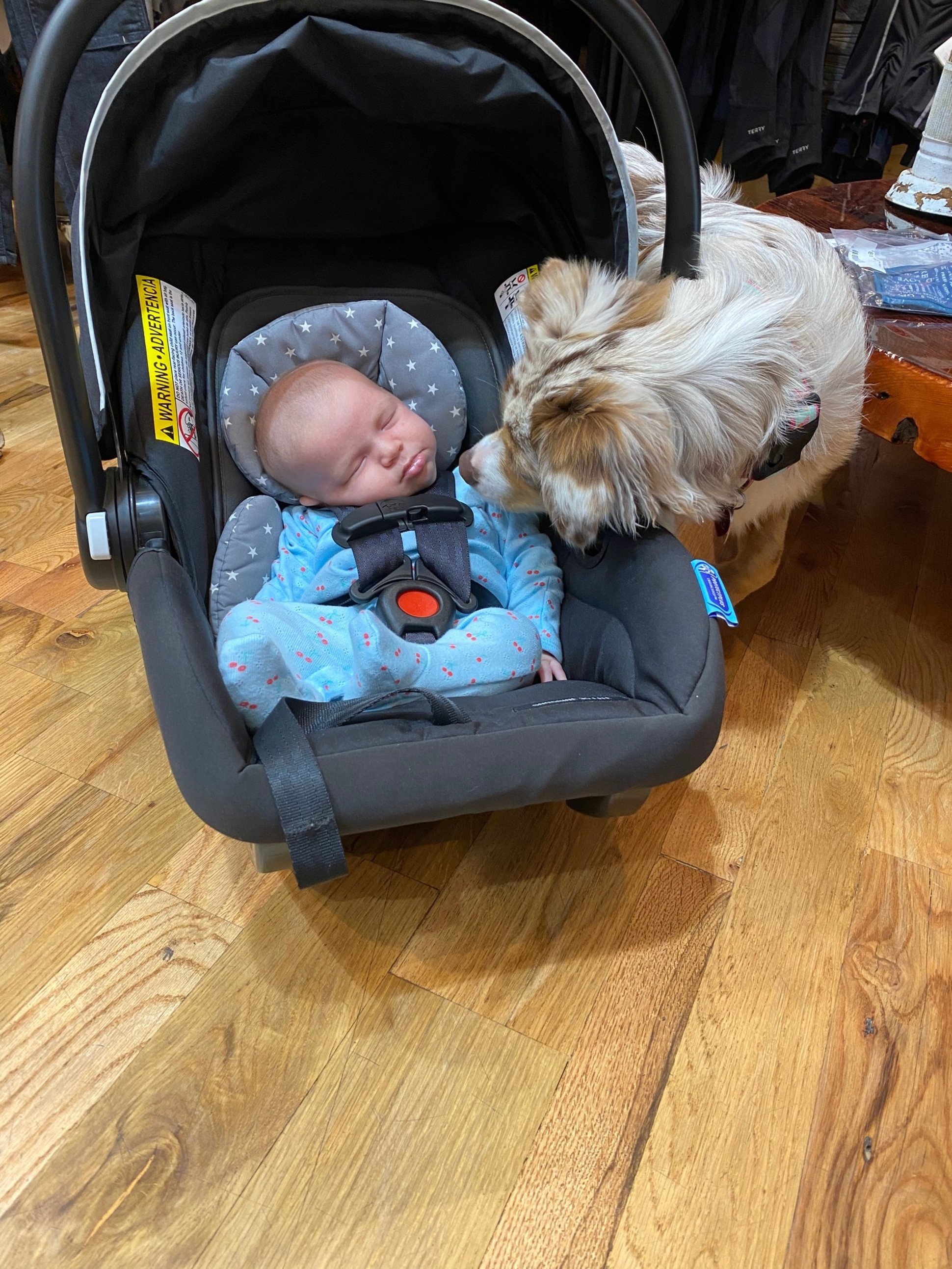Maple is really loving all of the kids who come in to see her! She also met our youngest guest of the season, she was a little over a month old and simply adorable. I forgot how much I missed seeing babies! Maple walked around her curiously and gave her a couple little sniffs. It was very sweet. Just a reminder, that we still take appointments for private shopping. This works especially good for families with little ones who may not be able to wear a mask, or are just practicing being out with a mask on.